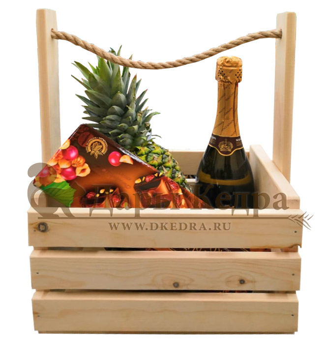 Деревянный ящик «Подарок» Компания Дары Кедра изготавливает деревянные ящики, которые в преддверии праздников могут быть использованы в качестве оригинального оформления подарка. В дальнейшем такой ящичек может стать интерьерной вещицей для хранения фруктов, овощей и пр. Обращаем Ваше внимание, что содержимое ящика не входит в его стоимость!